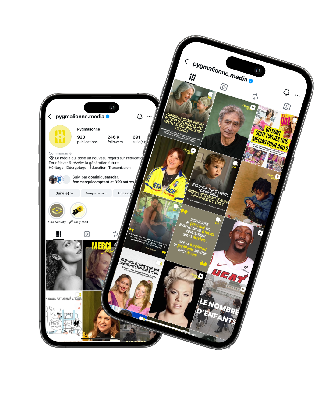 À travers des formats puissants et identifiables, Pygmalionne fédère une forte communauté de parents attentifs aux enjeux éducatifs, culturels et sociétaux qui révèle la génération de demain.